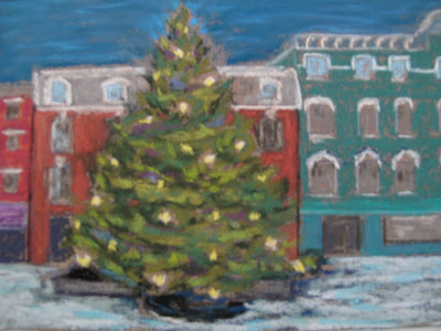 | Pastel painting of Pickering Square Christmas Tree by S.G. Roberts |